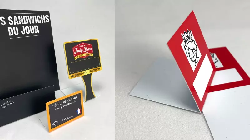 La matière utilisée pour votre chevalet PLV sur mesure peut également avoir un impact significatif sur son apparence et sa durabilité. Les matériaux couramment utilisés pour les chevalets PLV incluent le PVC blanc ou transparent, le polypropylène alvéolé, le carton compact ou micro cannelé, en différente épaisseur offrant ses propres avantages et possibilités de personnalisation. Vous avez également la possibilité de combiner les matériaux comme par exemple : un chevalet carton avec son chargeur porte documents en PVC transparent ou encore un chevalet en PVC blanc avec de la matière ferreuse pour pouvoir y ajouter des supports magnétiques par dessus.