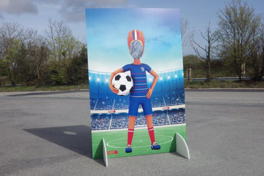 Le totem passe-tête est simple à mettre en oeuvre. Il est très léger et se transporte facilement. Et il tient seul débout grâce à ses deux pieds. Le trou réalisé au niveau de la tête permet à chacun de glisser la sienne. Et de se projeter en Russie avec l’Equipe de France,…