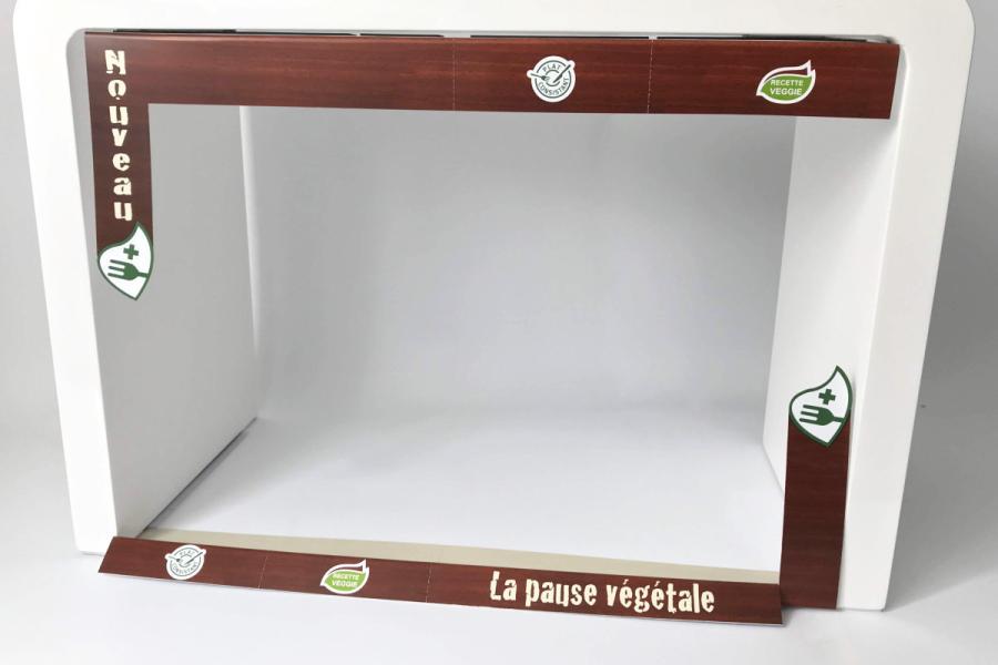 L’objectif du cadre de linéaire est de mettre en valeur la gamme de produits exposée en rayon. De multiples variantes existent : à poser ou à coller, 1 à 4 pièces pour couvrir 2 à 4 côtés, fixe ou télescopique,…