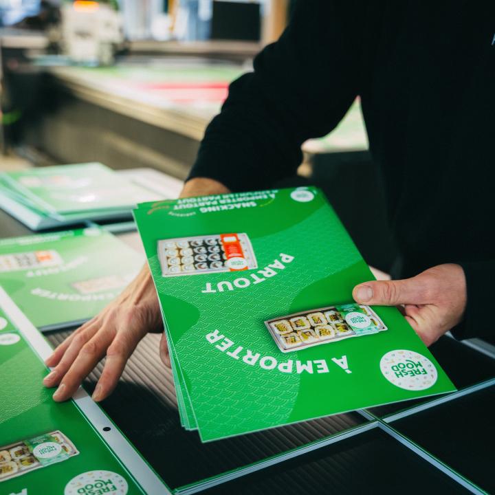 Autocollant, vitrophanie, adhésif, sticker de vente
