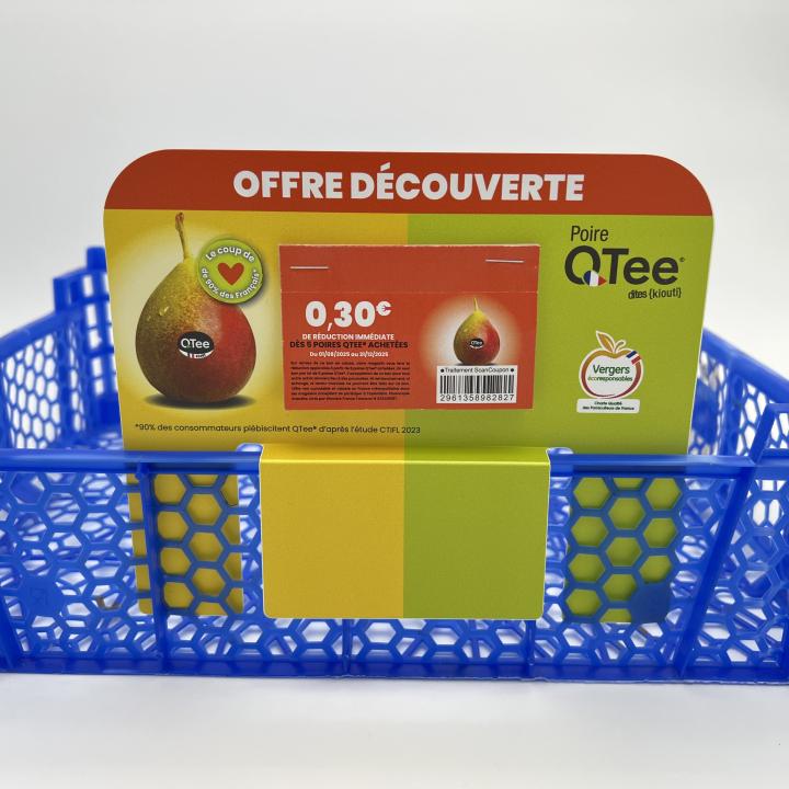 Qtee est une marque de poires premium, reconnue pour son goût unique et sa communication vitaminée. À l’occasion d’une opération promotionnelle en grande distribution, la marque souhaitait mettre en avant son offre découverte à travers une PLV pratique et impactante.