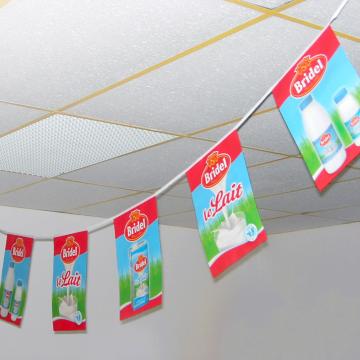 La guirlande personnalisée est un support décoratif et promotionnel léger, conçu pour attirer l’œil dans un espace de vente, un stand ou un lieu d’animation. Composée de fanions suspendus ou de mobiles en mouvement, elle capte l’attention de vos clients de manière originale et dynamique.